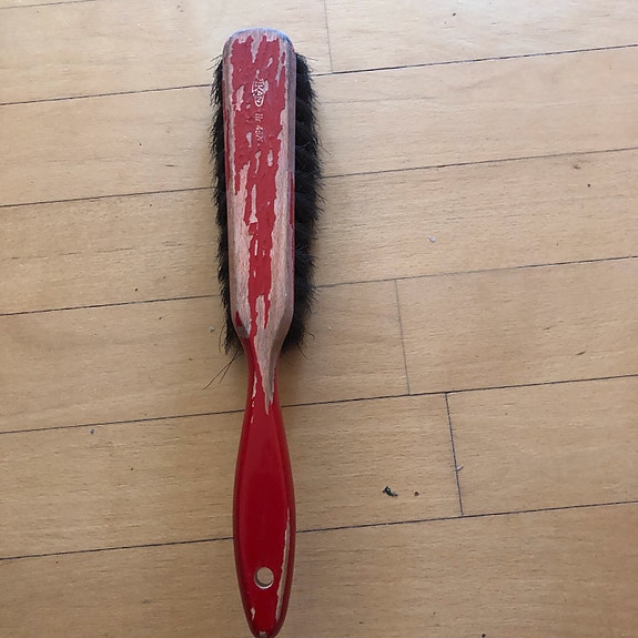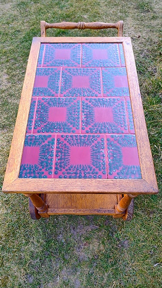 Gl barbord med røde kakler