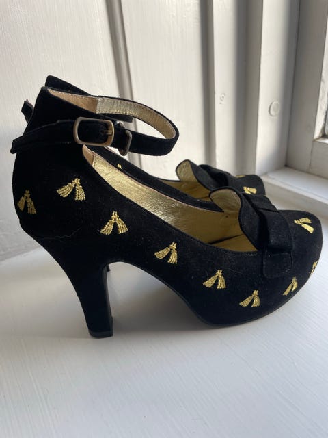 54 kr.Gule stiletter i størrelse 40 (str. 40 )Slangerup2 t.Orderly Shop - Gode brugte ting fra tidligere ejereFøj til favoritter.