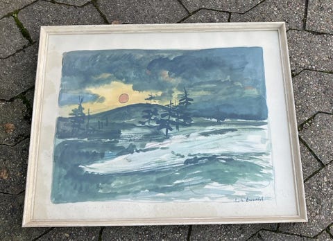 Stor indrammet akvarel