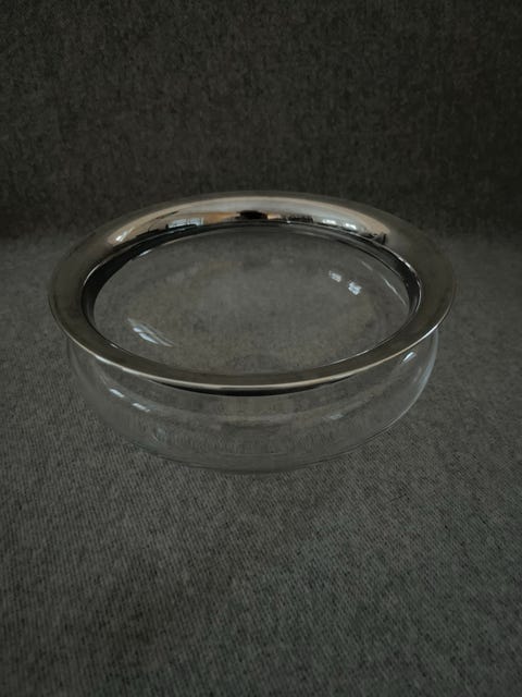 Glasskål med sølvkant