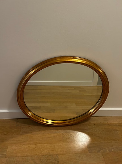 Ovalt spejl med gylden ramme