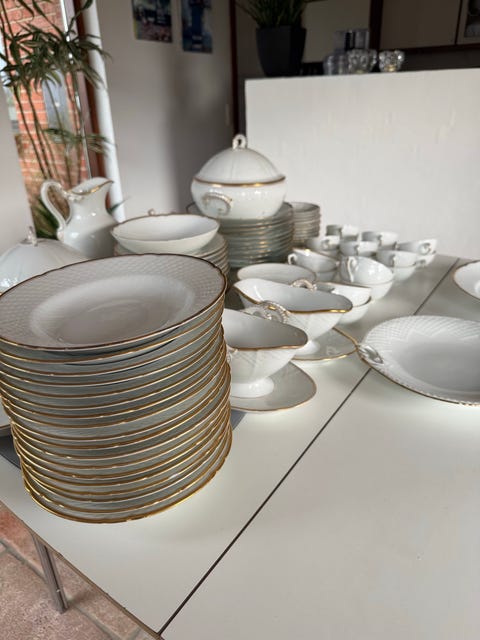Fajance, frugtskål, aluminia