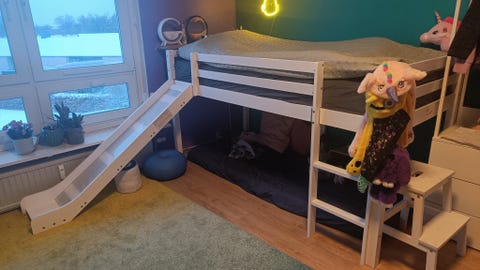 Halvhøj seng med rutsjebane