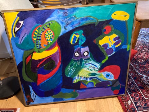 Stort abstrakt maleri, 120 x 90 cm