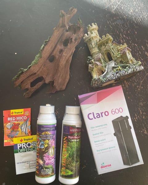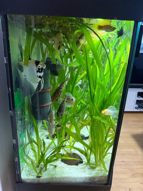 Akvarie + fisk + tilbehør