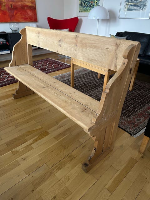 Kirkebænk i fyrretræ