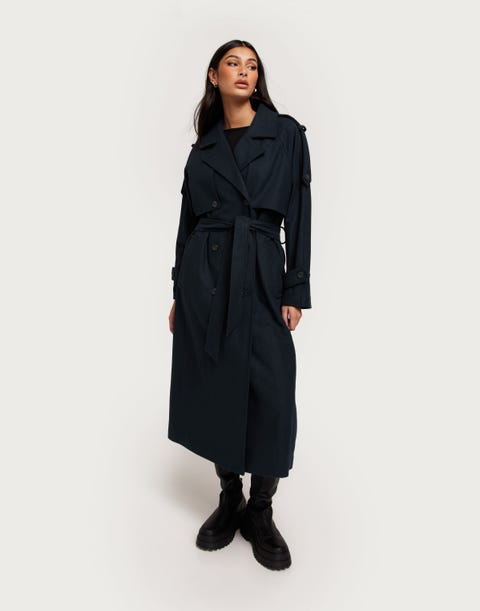 Elegant blå uldfrakke