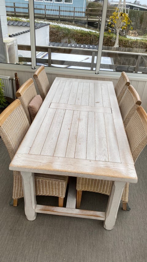 Egetræs bord med 8 stole