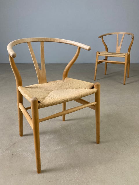 Carl Hansen Hans J Wegner Lounge Stol CH 22 i sæbebehandlet eg og flettet sæde