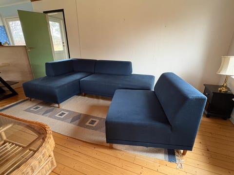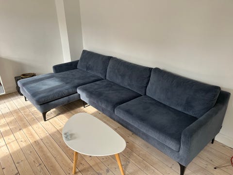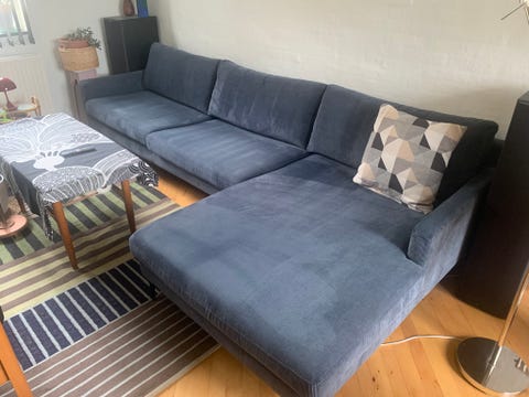 Blå sofa med chaiselong