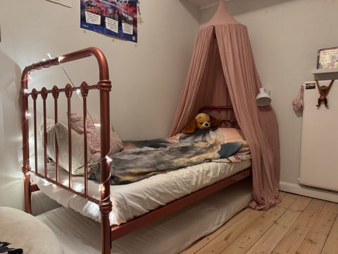Rosaguld seng med sengehimmel