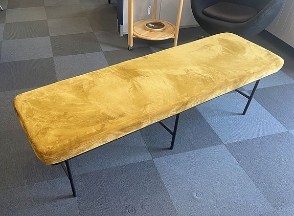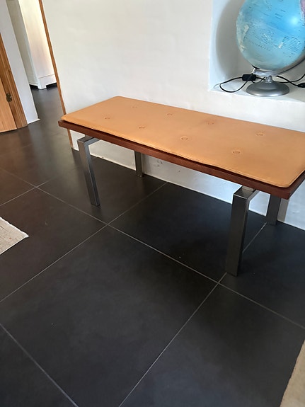 Bænk med stålben og hynde i skind