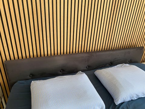Grå velour senge gavl