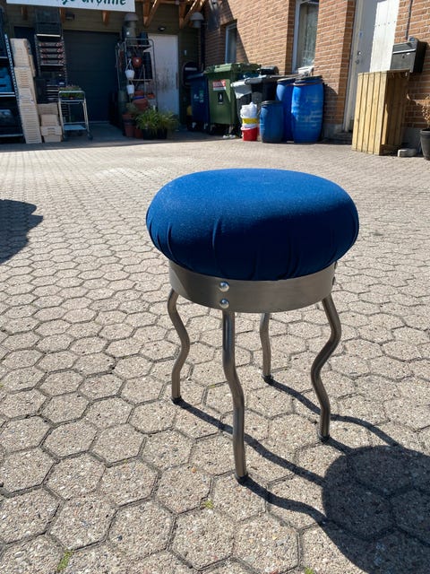 Taburet med blåt velourstof