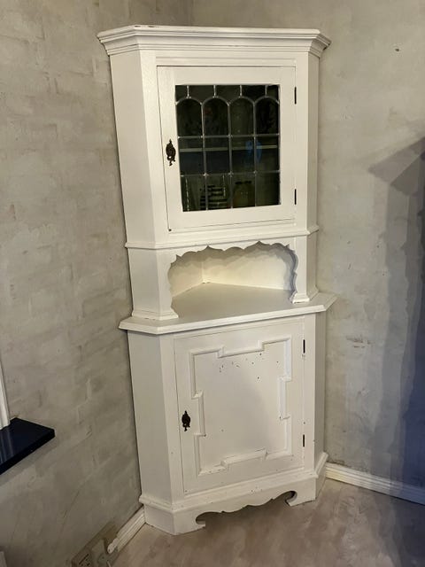 Hjørneskab i malet fyrretræ