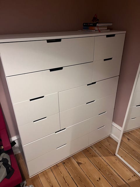 5 klædeskabe, med hylder
