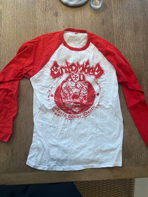 Entombed Death Metal t shirt Fruit of the Loom Langærmet T-shirt Hvid L Bomuld