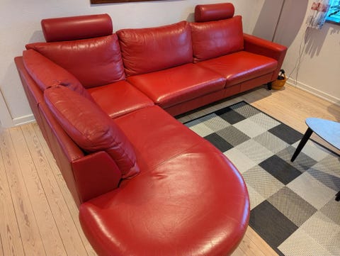 Rød læder chaiselong sofa