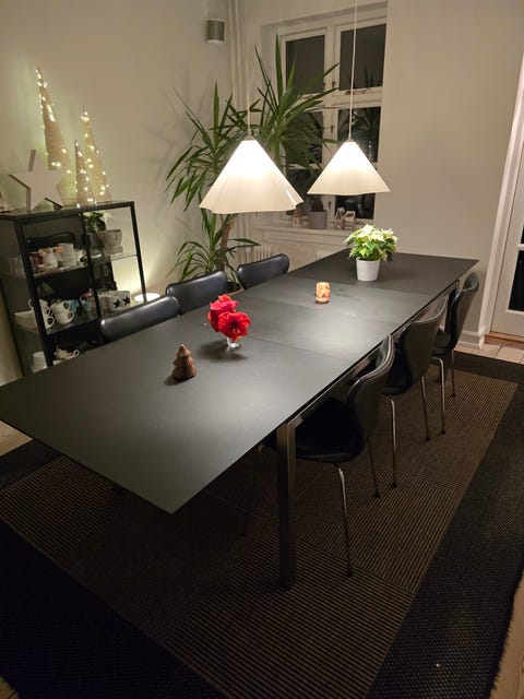 Sort spisebord med udvidelse