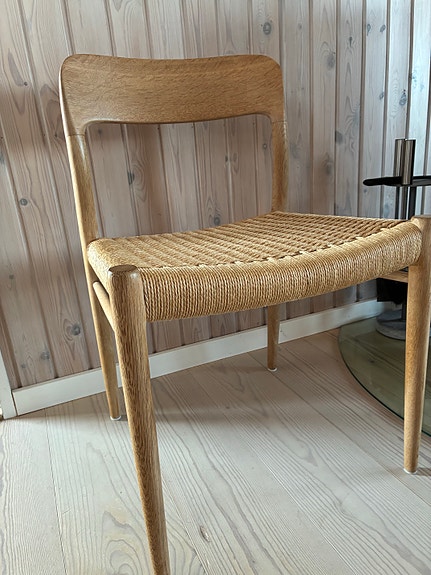 N.O Møller spisebordsstol. Model 75. Eg og flet.