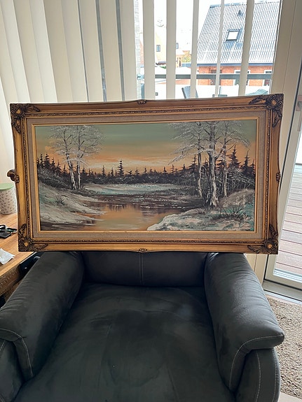Maleri landskab i ramme