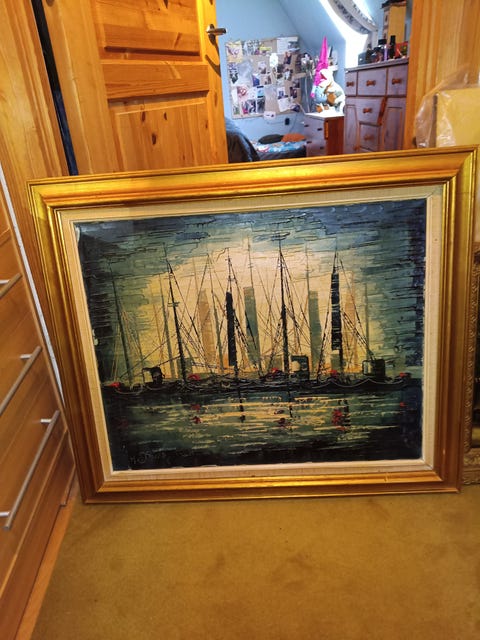 Kæmpe maleri i guldramme