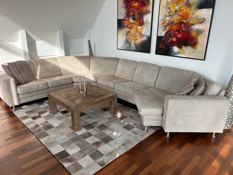 Stor grå sofa med chaiselong