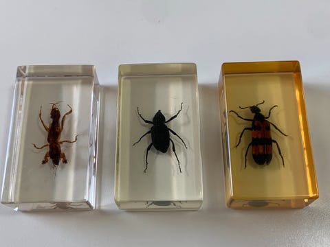 5 stykker rav med insekter...