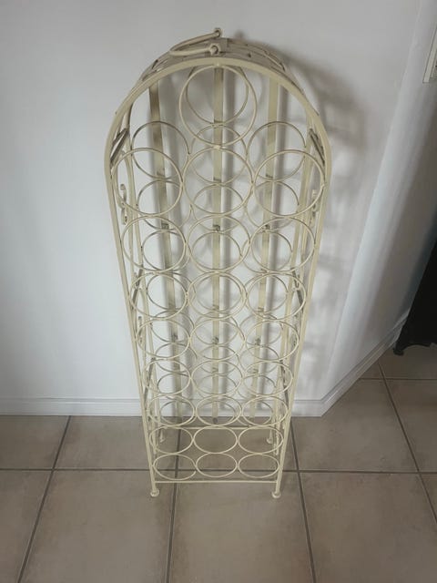 Vinreol i cremefarvet metal