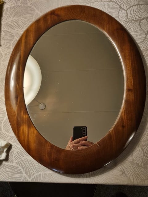 Ovalt vintage spejl i træ