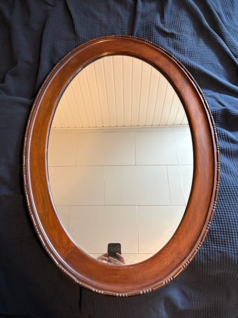 Smukt ovalt maghoni-spejl
