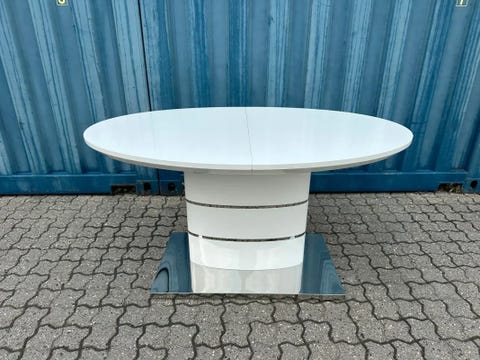 Hvid rundt spisebord med udtræk