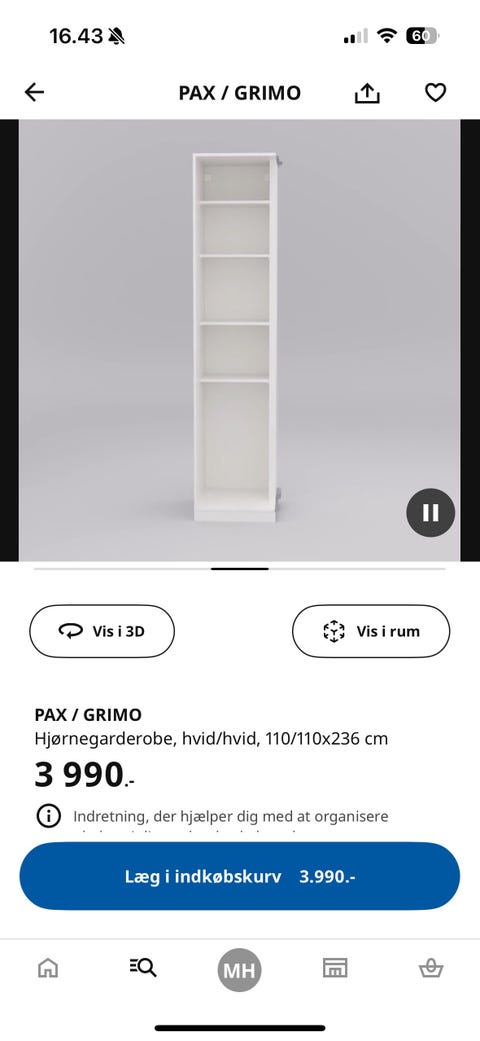 Ikea Kurve til Pax skab