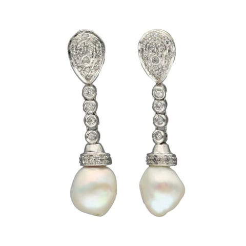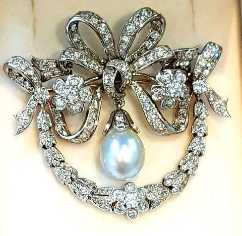 Georg Jensen & Wendel 18 K Hvidguld Ring med Perle og Diamanter 1,4 ct VI SENDER