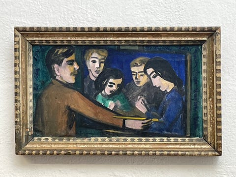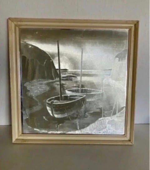 Maleri i dekorativ gylden ramme.