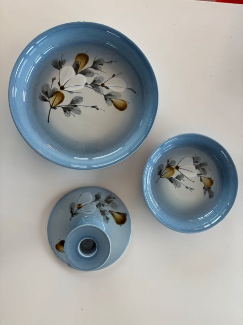 Rektangulær porcelænsbakke med blå blomstermønster fra Royal Copenhagen (str....