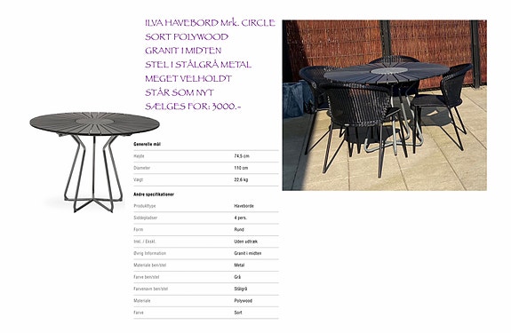 Ilva havebord og stole