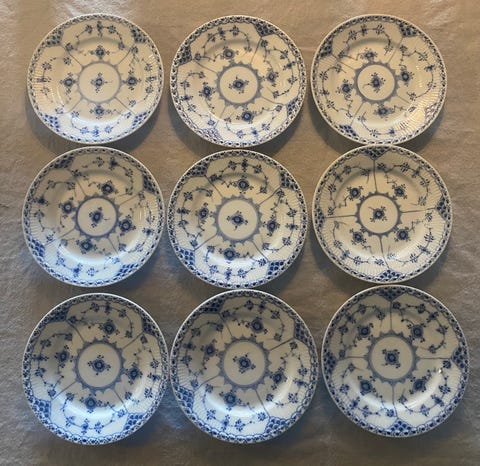 Blå- og hvidmønstrede porcelænstallerkener fra Royal Copenhagen (str. Ø. 8,5 ...