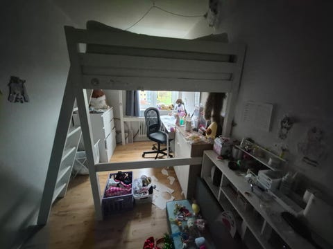 To høje senge med trappe-reol