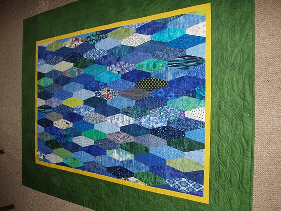Smukt quiltet tæppe blå
