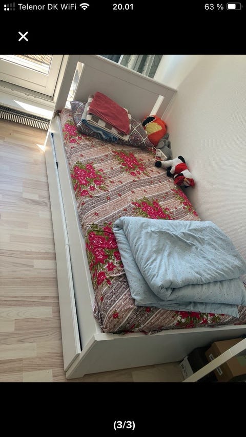 Træseng med udtræk og skuffe