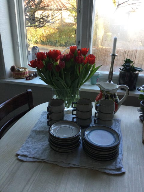 Porcelæn ældre kaffestel stel med blomstermotiv og med guldkant, Saksisk blomst