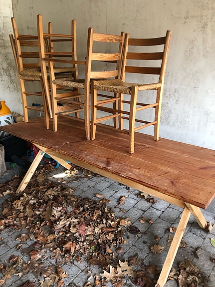 Reserveret, Hadsund - spisebordsstole, Norske Jær stole + hjemmelavet plankebord