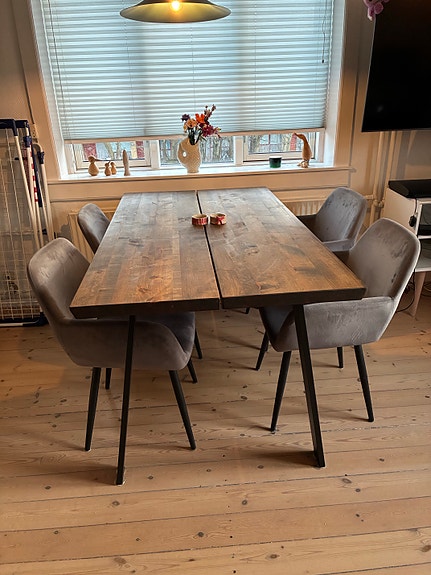 Flot plankebord med 4 spisestole