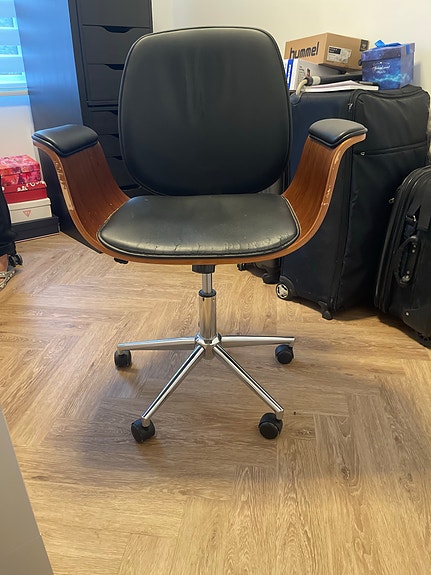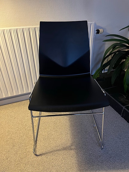 Stol i træ med sæde i sort læder