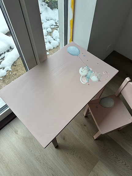 Farverig lille stol i træ