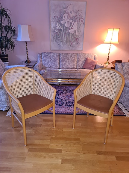 Stol i træ med orange betræk