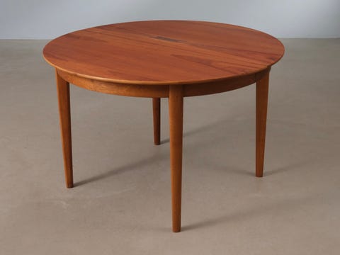Rundt teak spisebord m tillægsplader
