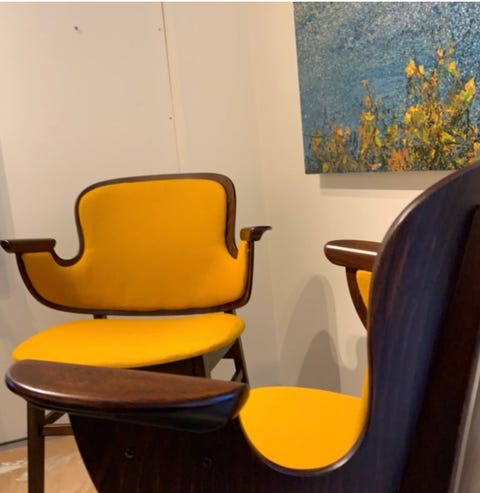 Bruno Mathsson Pernilla Lænestol med Fodskammel i Lys Træ og Beige Polstring