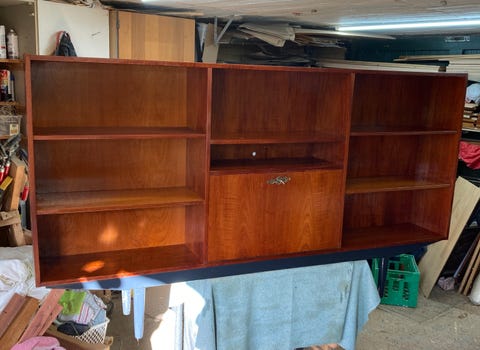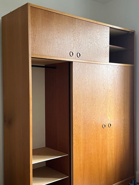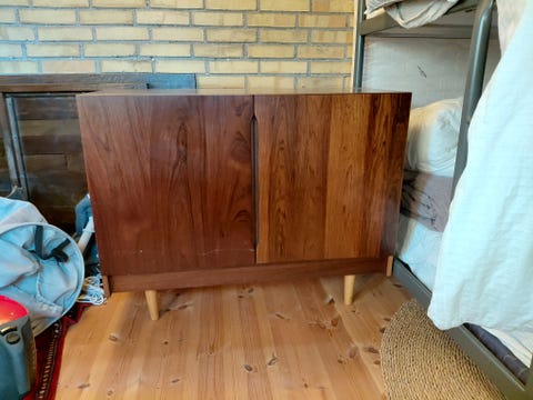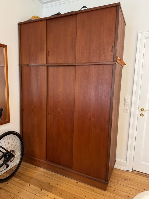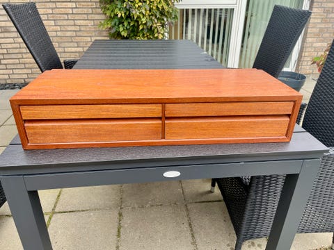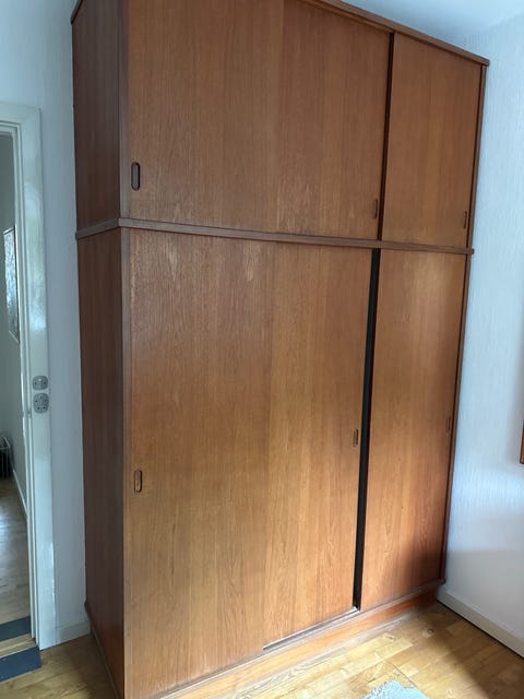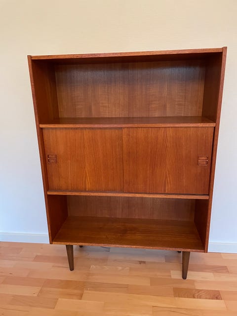 Dækketøjsskab i teak/eg Kr. 5.500,-